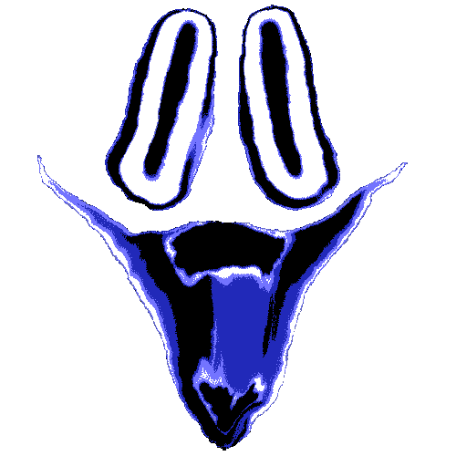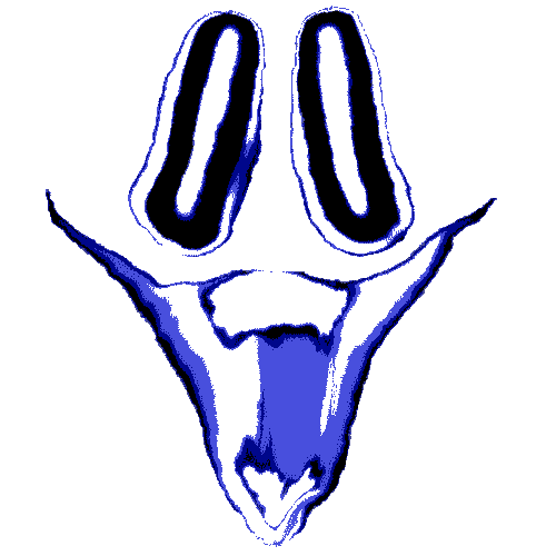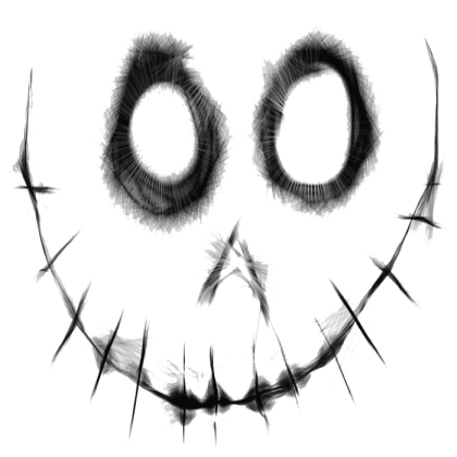 Its second face is a detailed face portraying that of a cartoon skeleton's. It originates from a pinterest post by user "Free Cliparts"