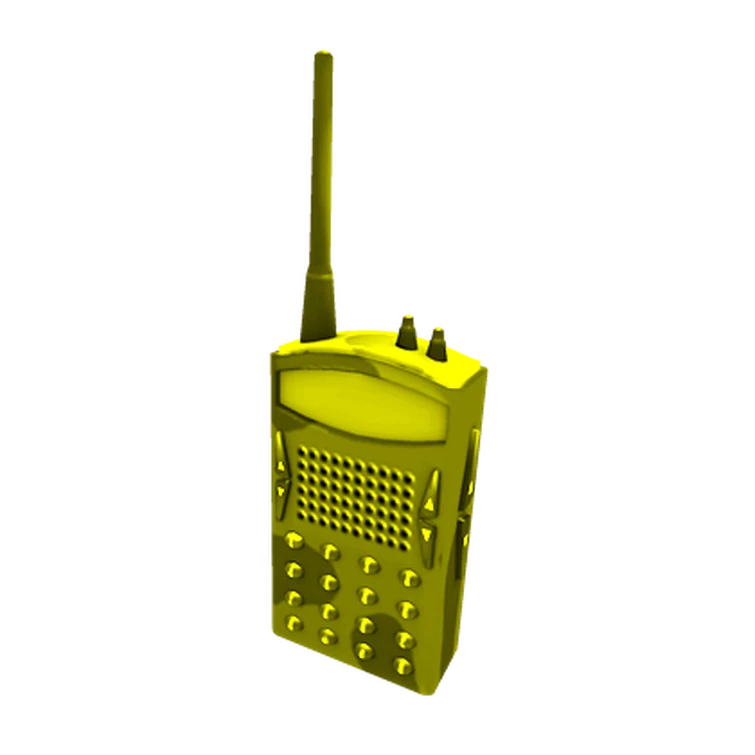 A militaristic radio tinted a pure gold, taking the model from the Airstrike gear on the Roblox catalogue.