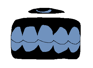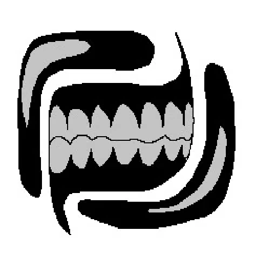 The fourth face is a frowning face with two white dots for eyes and fully white teeth with a sort of blur applied to them.