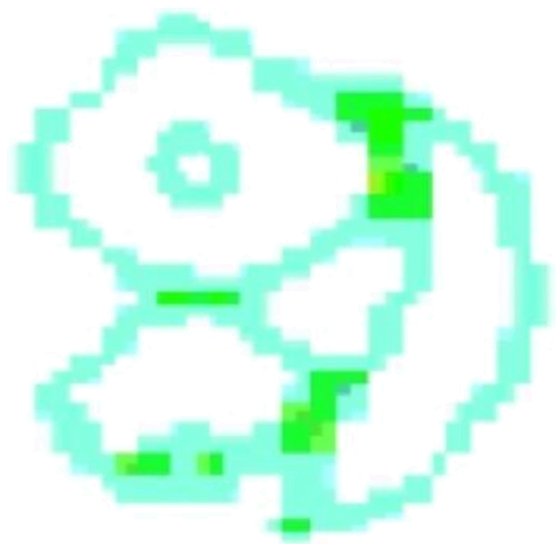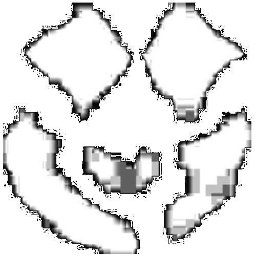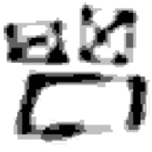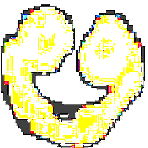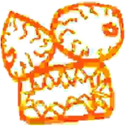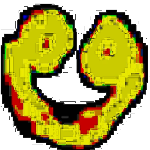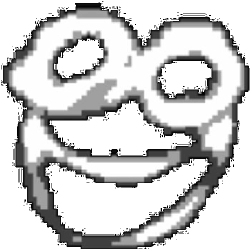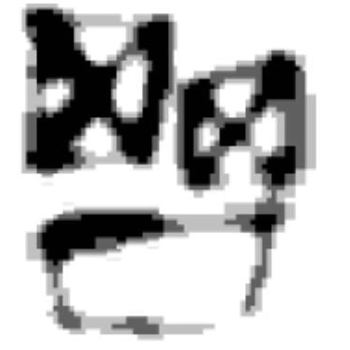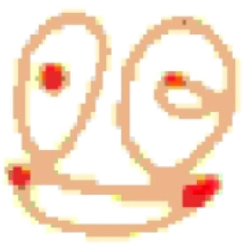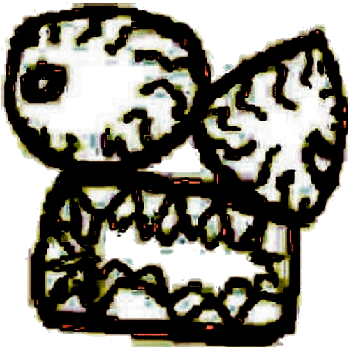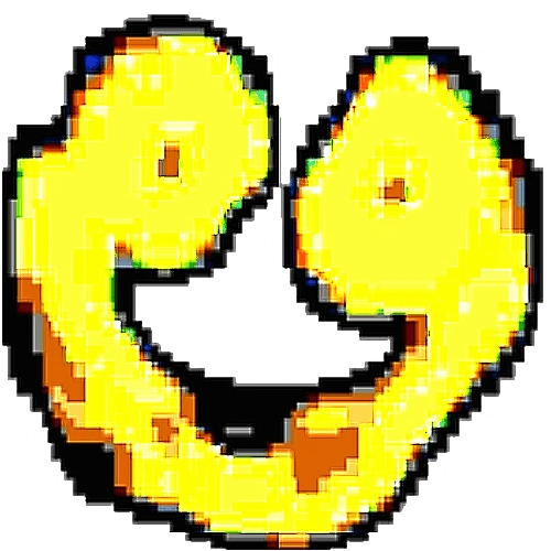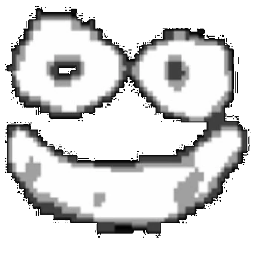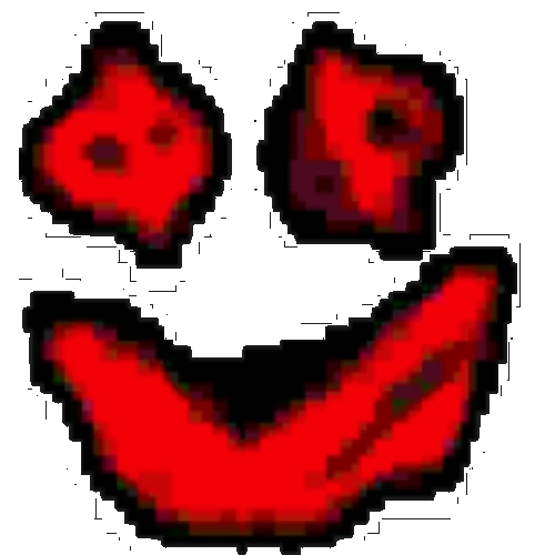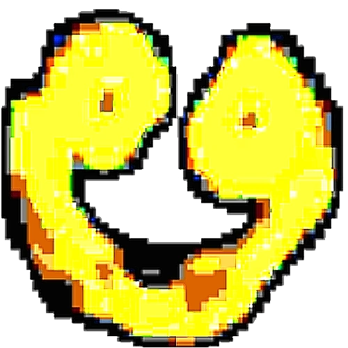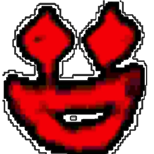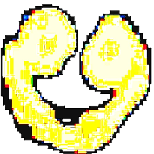 L-432 appears to be a very glitched, deep-fried smiling face.