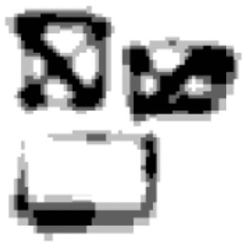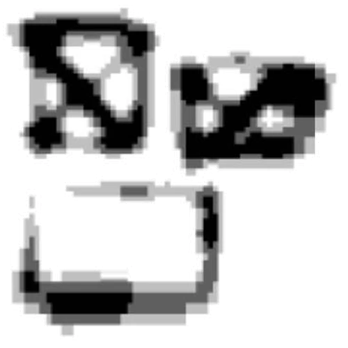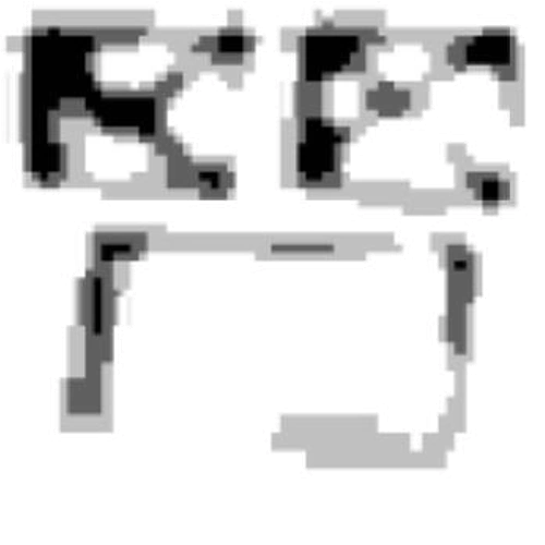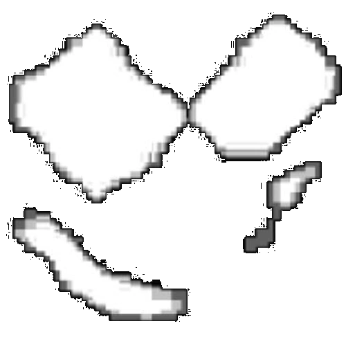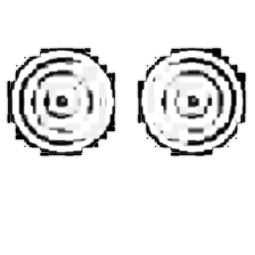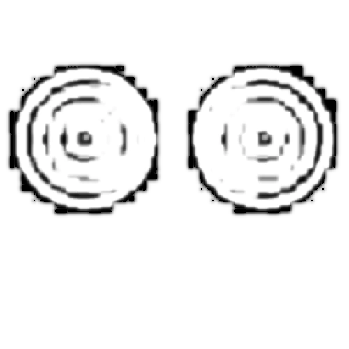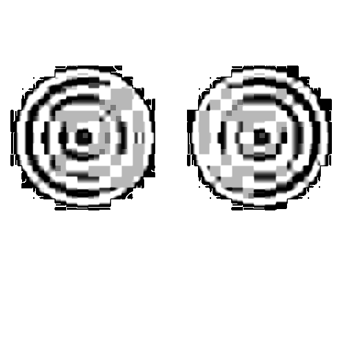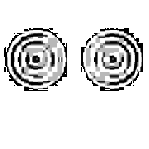 L-465 appears to be a pair of eyes with a very coarse design and a gray dot in the center of both eyes.