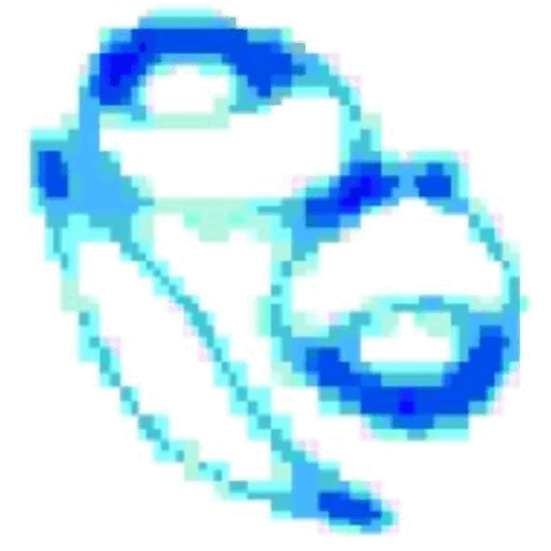 L-320 appears to be a goofy chromatic face that constantly makes different happy faces and changes to red, green, and blue in its animation. The effects used on its original images to make it low quality turn its colors to mostly cyan, teal, and somewhat beige, instead of blue, green, and red.